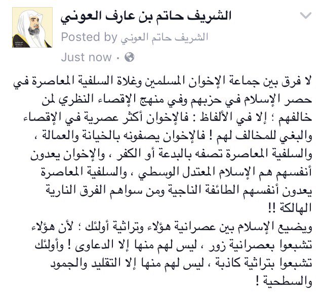 أ د الشريف حاتم العوني On Twitter لا فرق بين جماعة الإخوان المسلمين وغلاة السلفية المعاصرة إلا في الألفاظ